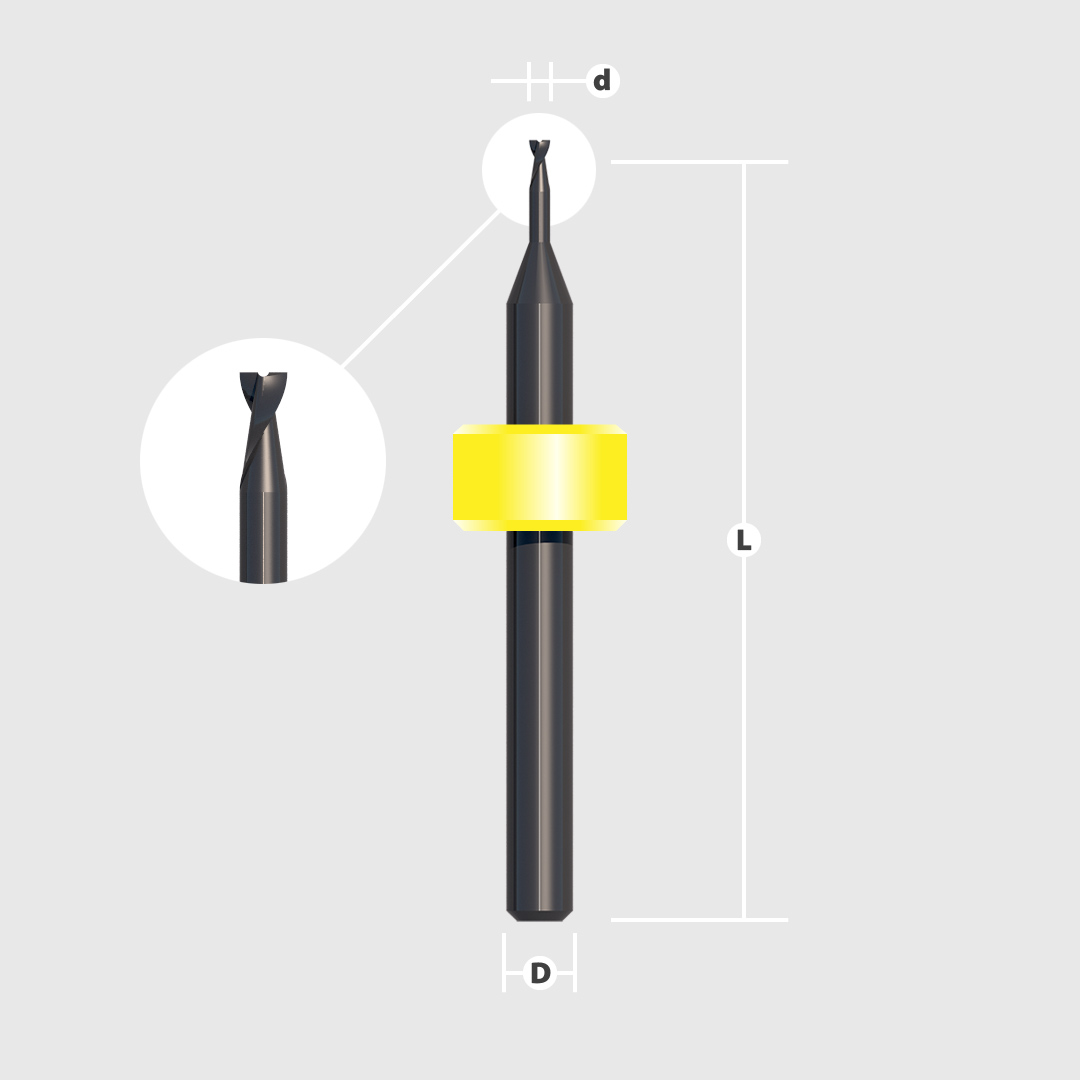 Цилиндрическая контурная фреза LPKF длиной 36 мм и рабочим диаметром 2.00 применяется для фрезерования внутренних и внешних контуров платы и отверстия > 2,4 мм.