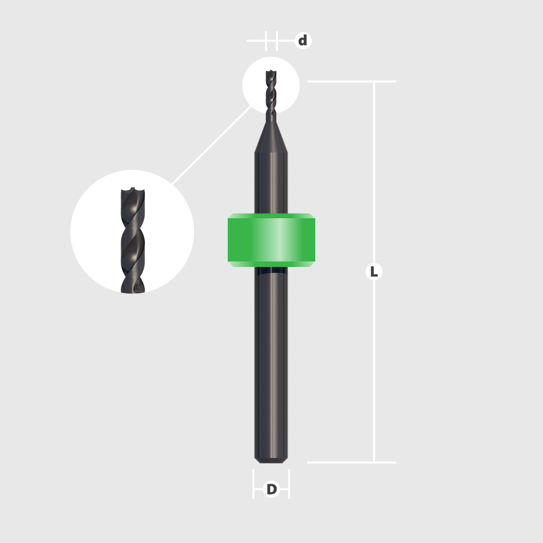 Цилиндрические сверла производителя LPKF, обладающие длиной 38 мм и рабочим диаметром 0.60 мм, предназначены не только для сверления печатных плат, но и других материалов.