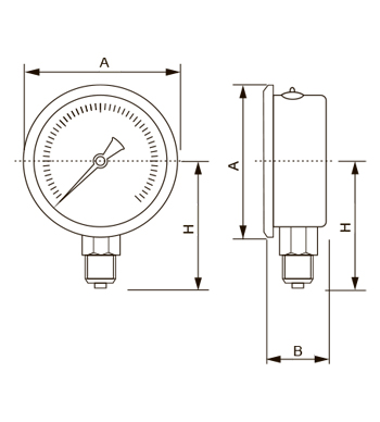 - Диаметр шкалы: 100 мм / 40 мм / 50 мм / 63 мм / 75 мм